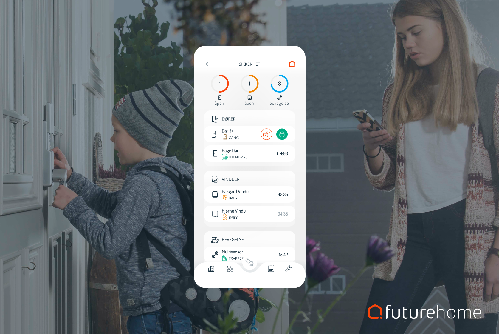 Smart dørlås koblet opp mot Futurehome gir deg komplett kontroll over låsen i hjemmet ditt. Du kan se status på dørlåsen, låse opp eller låse døren og holde styr på når døren ble låst opp fra hvor enn du er i verden. Når vi går inn i vinteren med flere ute av huset er det praktisk å kunne låse opp døren når du er borte og beroligende å alltid kunne se statusen på dørlåsen rett fra mobilen.